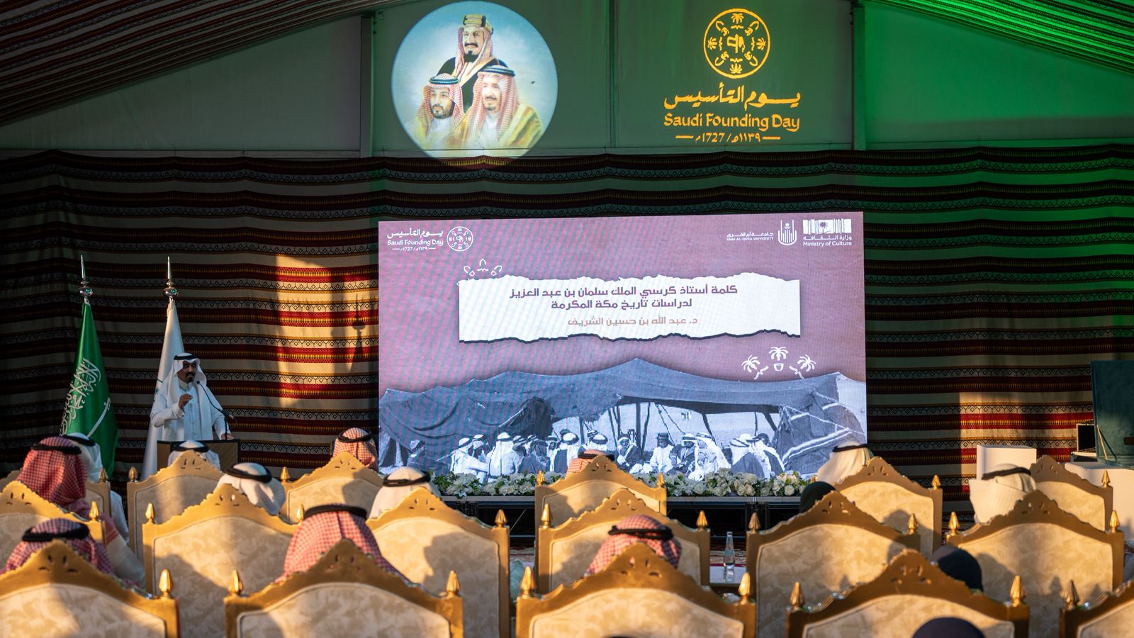 احتفت جامعة أمِّ القرى بذكرى يوم التأسيس عبر برنامج ثقافي وتاريخي ضمَّ سلسلة من الفعاليات؛ أُقيم في مقر الجامعة بالمدينة الجامعية بالعابدية؛ استشعارًا لقيم الوحدة والتلاحم التي أرسى دعائمها مؤسس هذا الكيان العظيم الإمام محمد بن سعود مؤسس الدولة السعودية الأولى في عام 1727م، وتأكيدًا على عمق الجذور التاريخية للدولة السعودية الممتدة لثلاثة قرون، وترسيخًا لقيم الانتماء والاعتزاز الوطني.