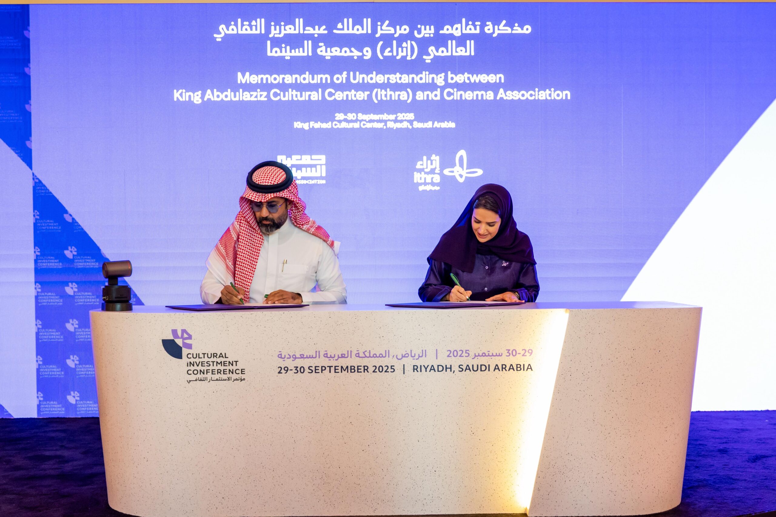 وقّع المذكرة عن جمعية السينما المدير التنفيذي هاني الملا، وعن إثراء مديرة البرامج نورة الزامل، وذلك على هامش مشاركة الطرفين في مؤتمر الاستثمار الثقافي 2025 بالرياض.