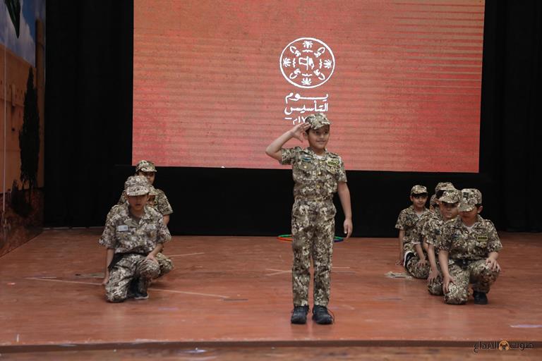 كما شهد الحفل برنامجًا خطابيًا تخللته كلمات وقصائد وطنية، وعرضًا مسرحيًا تجسيديًا يروي قصة تأسيس الدولة السعودية الأولى، إلى جانب تقديم العرضة السعودية، التي تفاعل معها الحضور وسط أجواء وطنية مميزة.