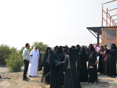 (نظّمت بلدية محافظة القطيف، اليوم الثلاثاء، برنامجا علميا استضافت خلاله 130 طالبة من قسم التاريخ والتراث بكلية الآداب – جامعة الإمام عبد الرحمن بن فيصل، في شاطئ المانجروف بجزيرة دارين وتاروت، ضمن مبادرات السياحة والاستدامة البيئية.